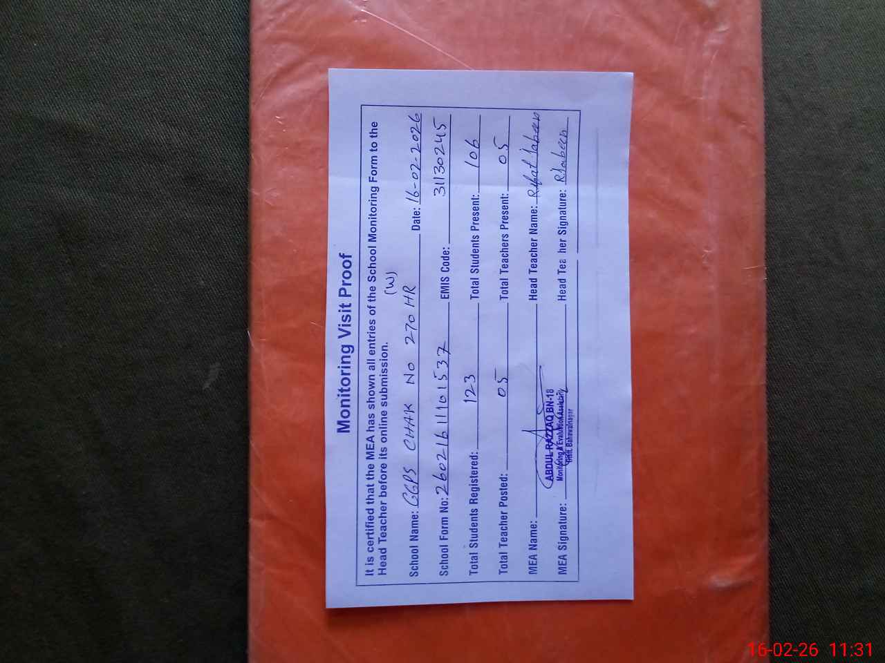 | EMIS Code: 31130245 | Name of School: GGPS CHAK NO. 270/HR-W | |||
