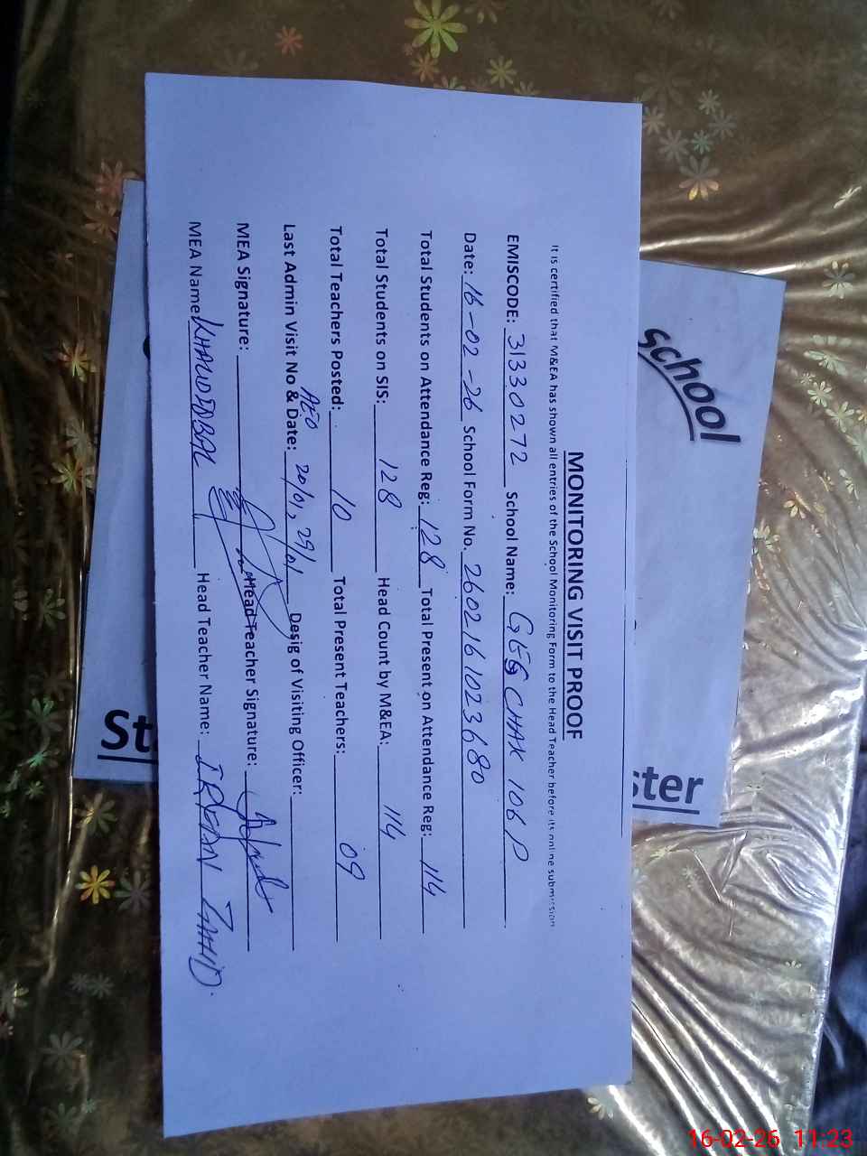 | EMIS Code: 31330272 | Name of School: GES CHAK 106/P | |||