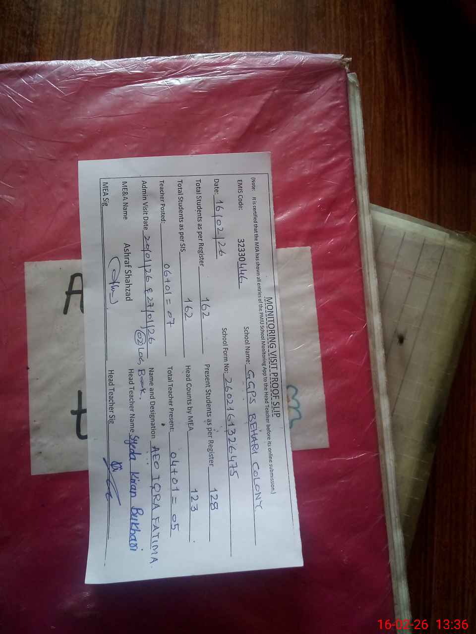 | EMIS Code: 32330446 | Name of School: GGPS BEHARY COLONY | |||