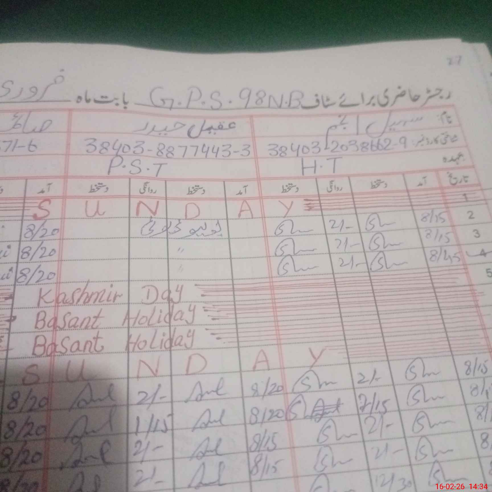 | EMIS Code: 38420341 | Name of School: GPS CHAK NO.98 NB | |||