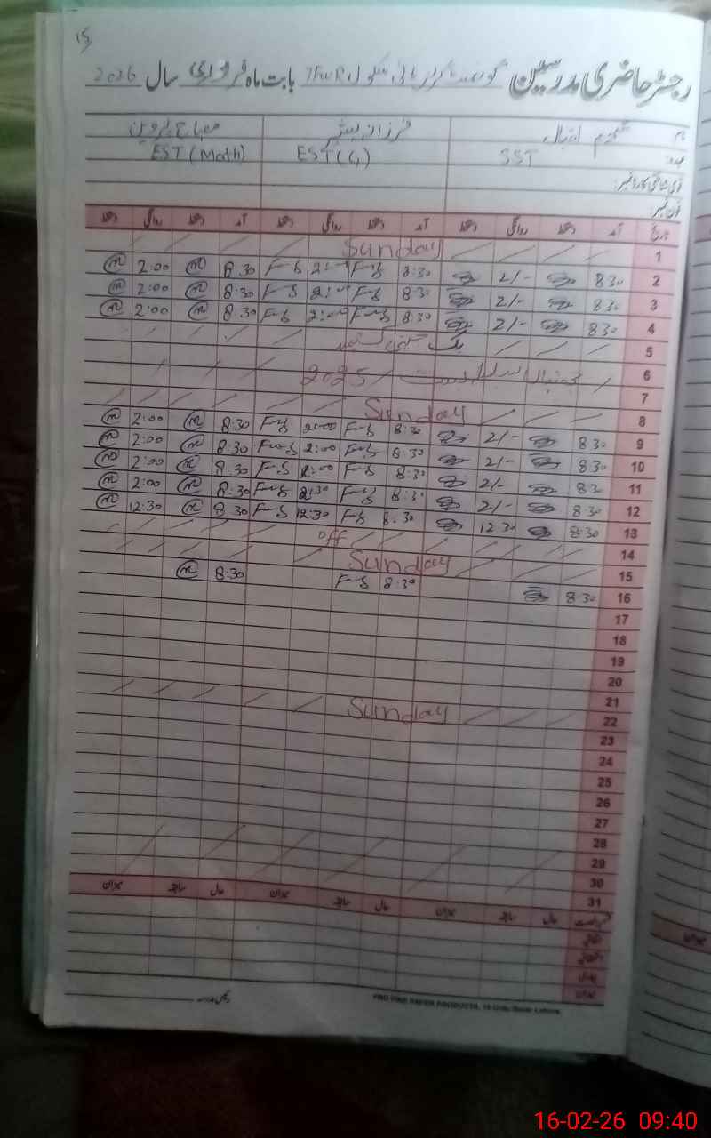 | 31**** | Uz**** Za**** | EST Urdu | Regular | 0 | 0 | 0 | 0 | 0 | 0 | 0 | 0 | 0 | Casual |
