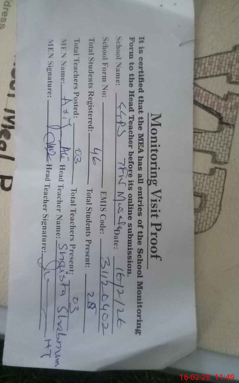 | Certified that this School was Inspected by the Undersigned MEA/DMO Today and the Information Stated Above is as Per Record. | |||||