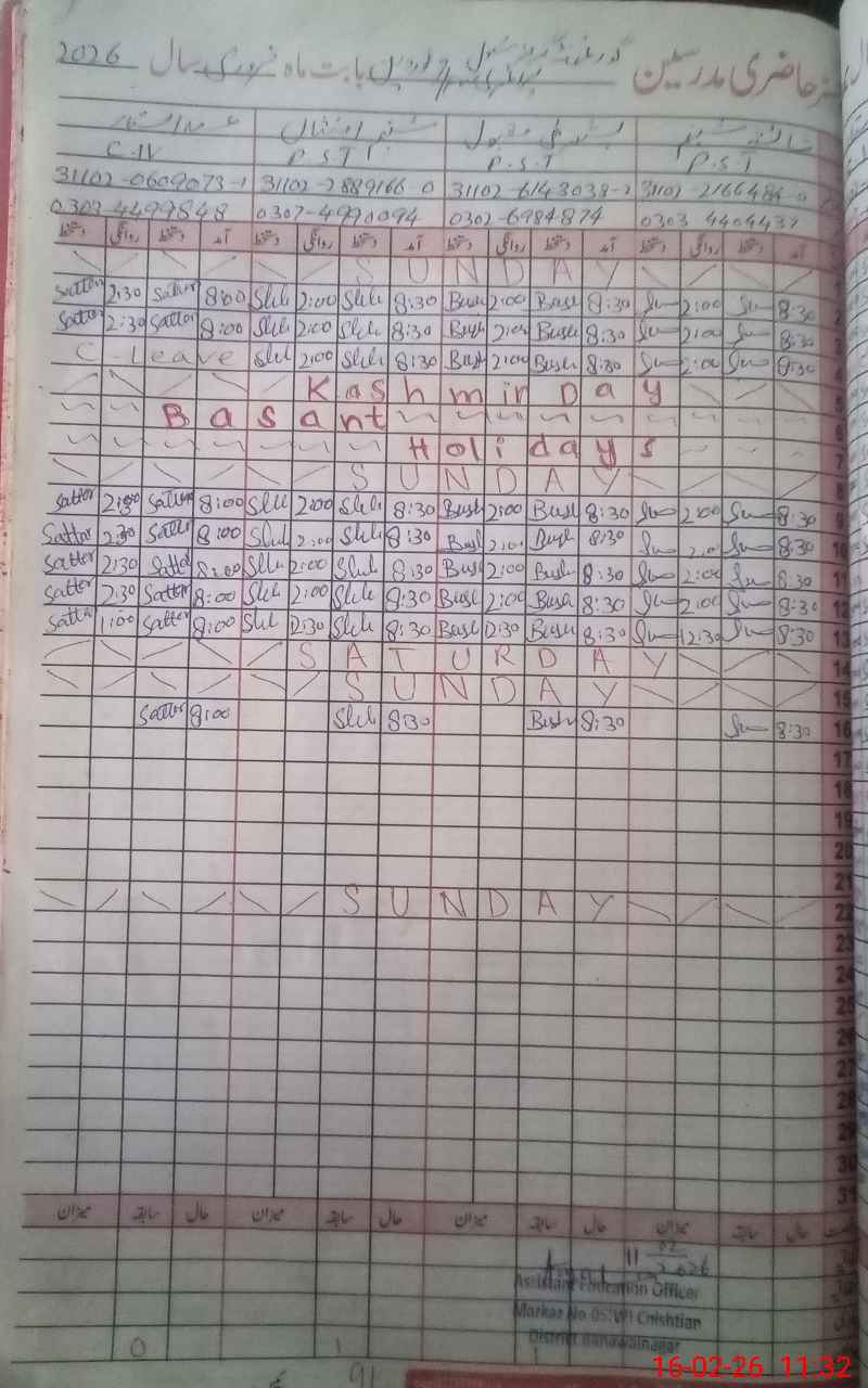 | CNIC | Full Name | Designation | R/C | Absence During Last Calender Month |