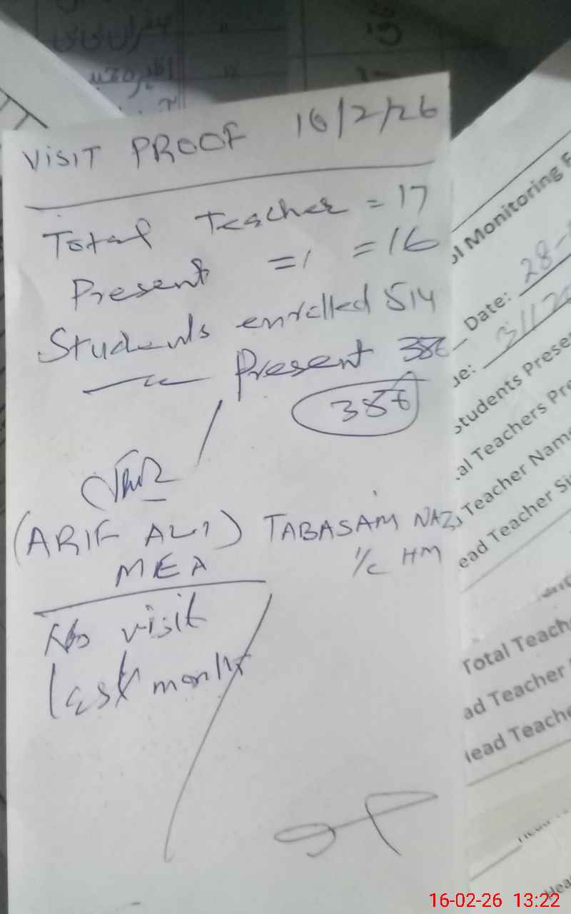 | Remarks (Use Separate Page if Required): Incharge Head Munazza Rasheed leave not approved by competent authority IT teacher post is vacant, teacher needed for computer classes Boundary wall is fallen 200ft approximately needs construction | |||||