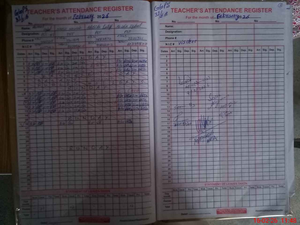 | Name: MU**** IQ**** Designation: (School Headmaster's/Headmistress's) PST Phone/Cell Number: 03**** |