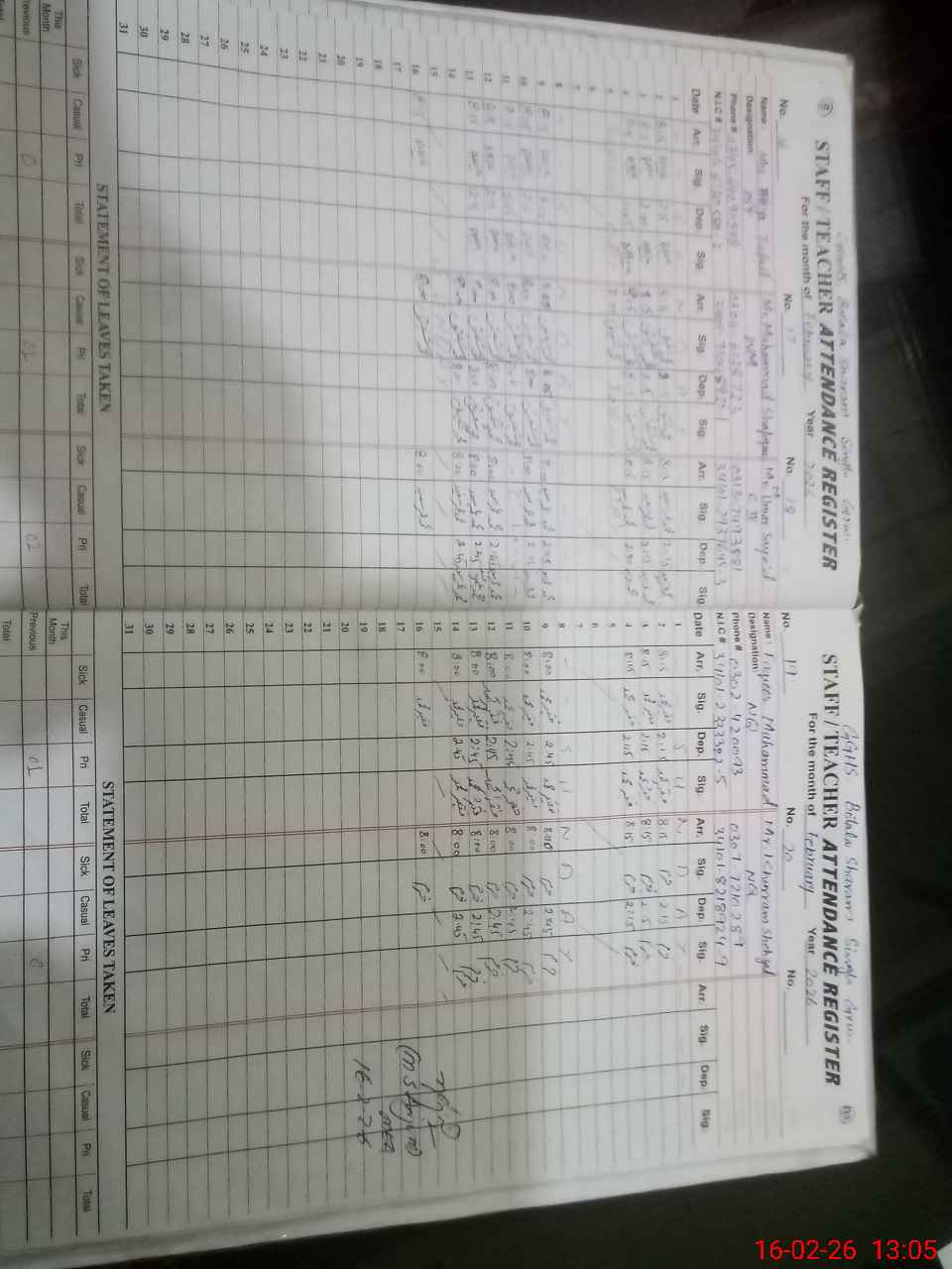 | CNIC | Full Name | Designation | R/C | Absence During Last Calender Month |