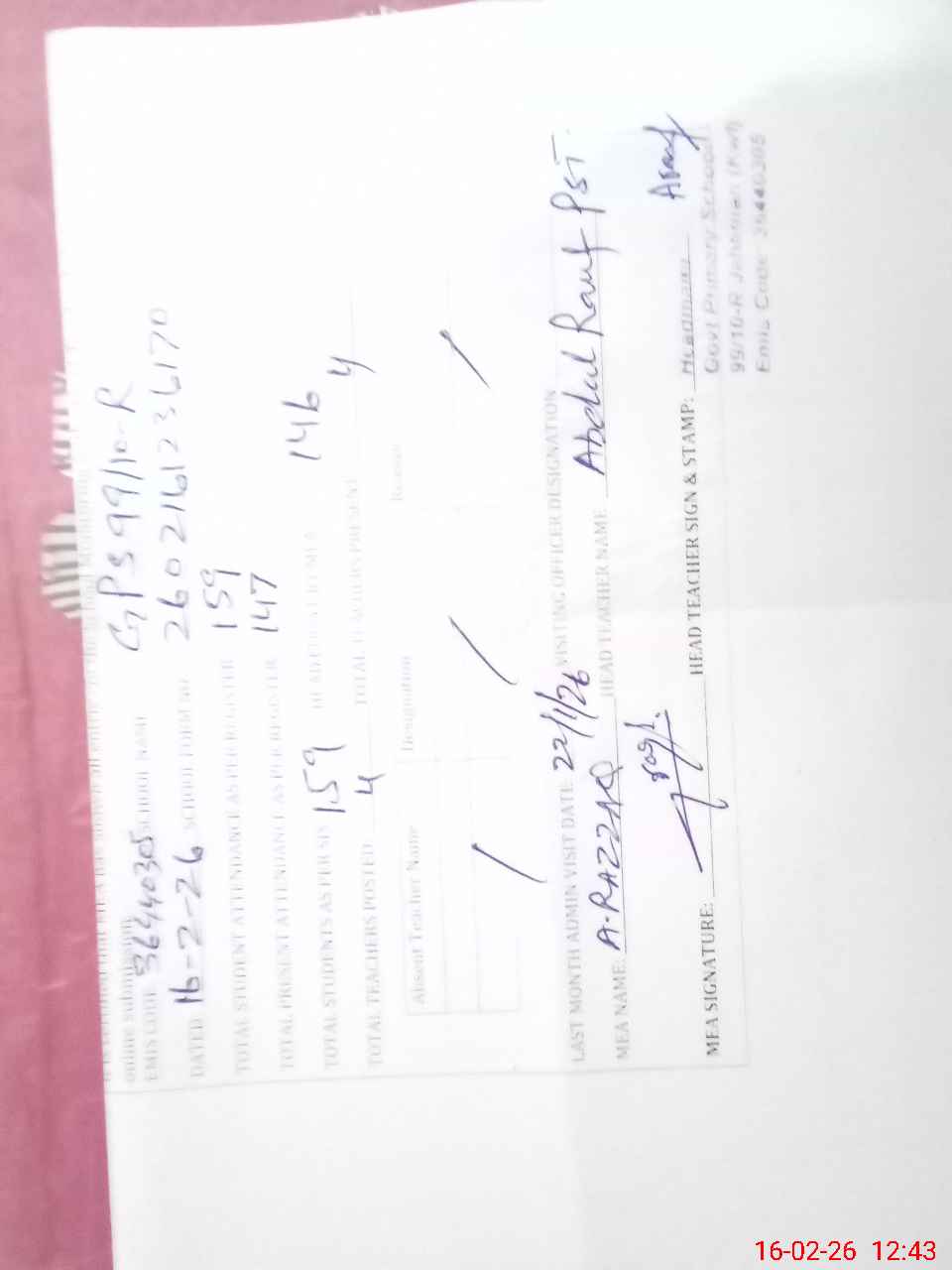 | Name: Ab**** Ra**** Designation: (School Headmaster's/Headmistress's) PST Phone/Cell Number: 03**** |