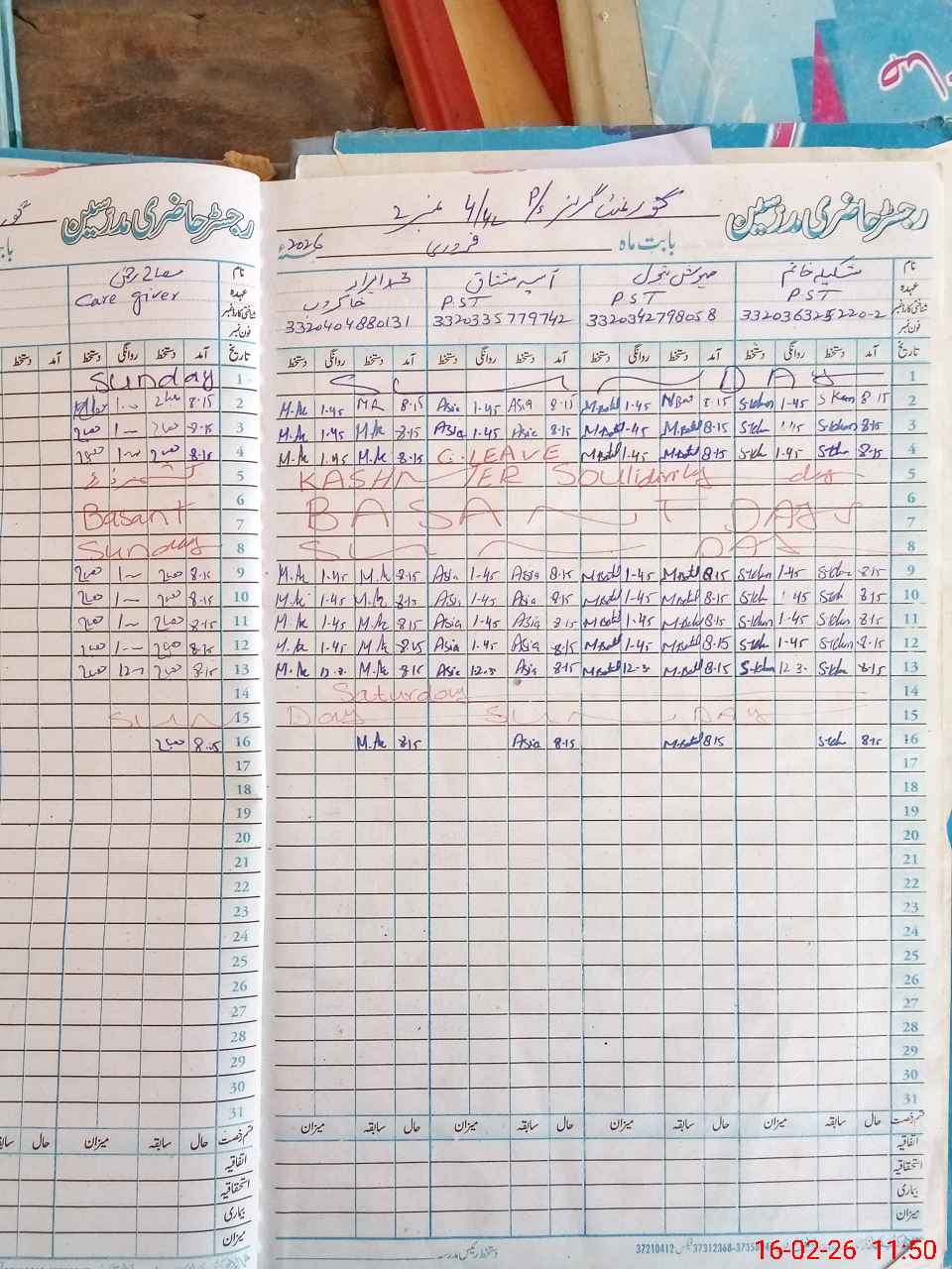 | Leave | Duty | Absent | Maternity | Medical | Ex- Pak |