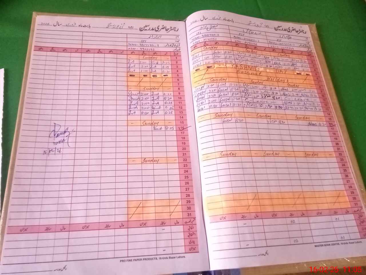 | CNIC | Full Name | Designation | R/C | Absence During Last Calender Month |