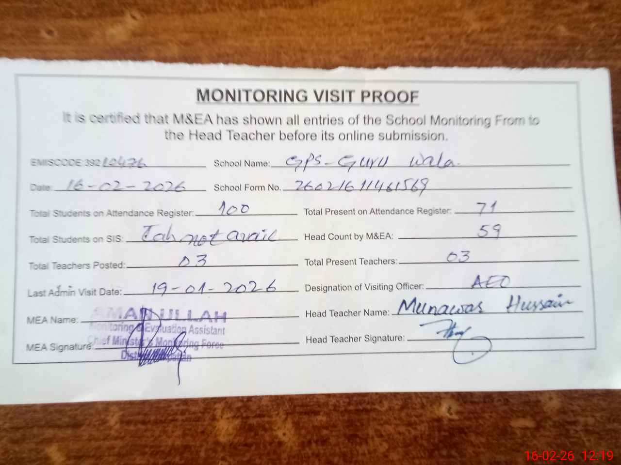 | EMIS Code: 39210476 | Name of School: GPS GURU WALA | |||