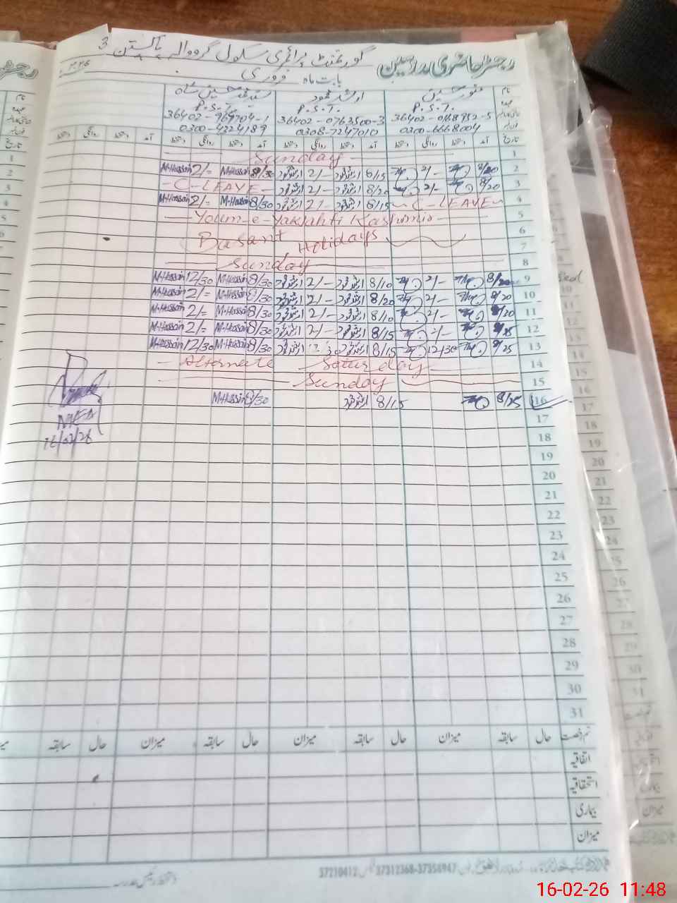 | Name: Mu**** Hu**** Designation: (School Headmaster's/Headmistress's) PST Phone/Cell Number: 03**** |