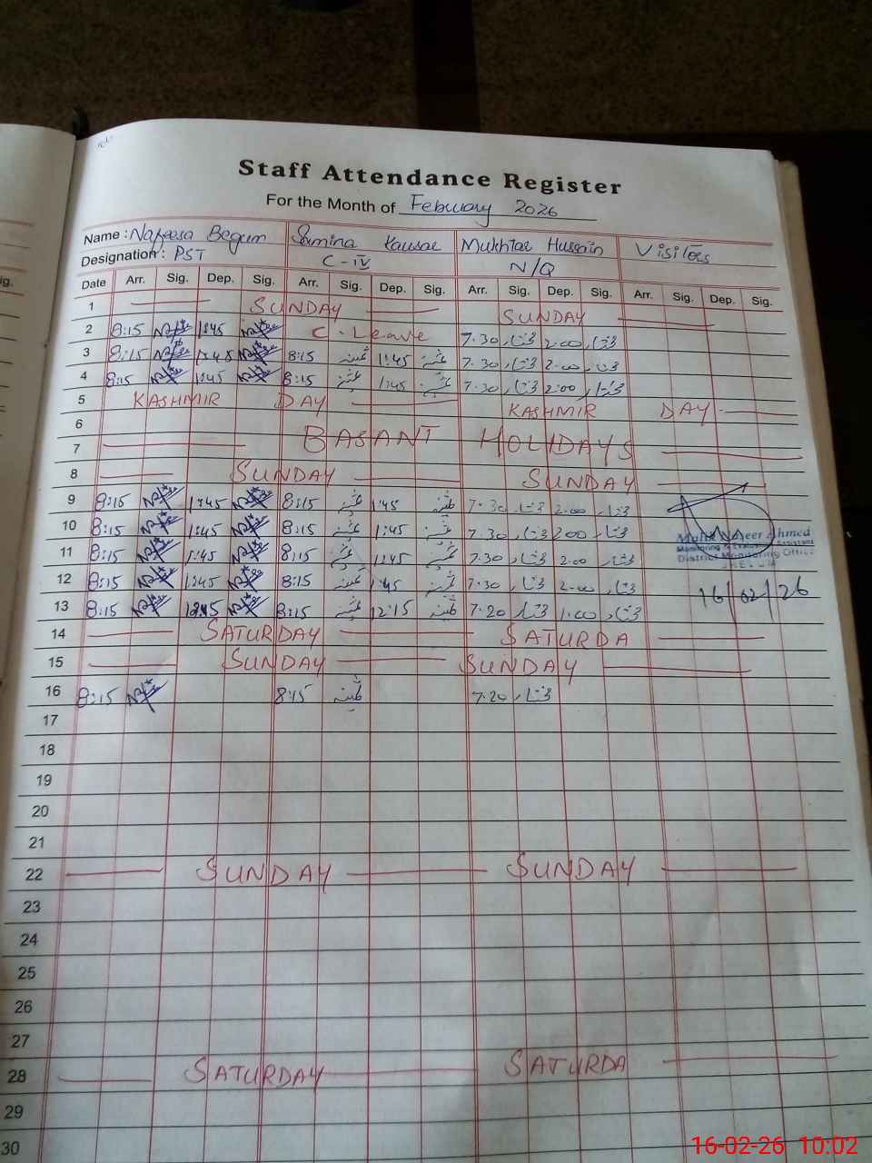 | Monitoring Date: 16-02-2026 | Start Time: 16-02-2026 09:17 AM | End Time: 16-02-2026 10:04 AM | Name of MEA: Na**** Ah**** | |