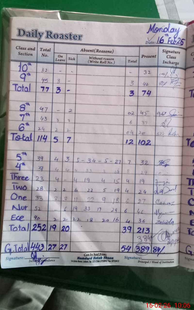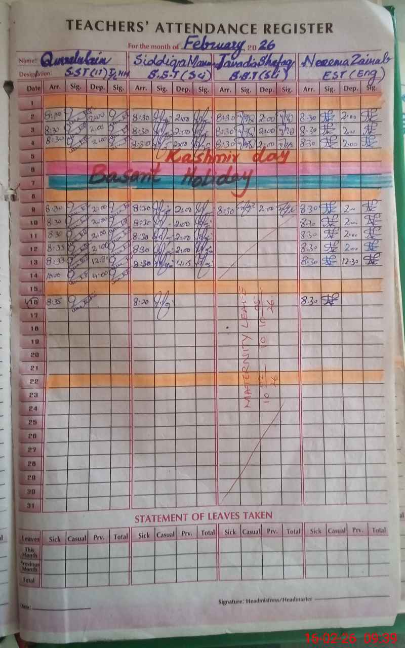 | 37**** | Ja**** Sh**** | SST Science | Regular | 0 | 0 | 0 | 0 | 0 | 0 | 0 | 0 | 0 | Maternity |