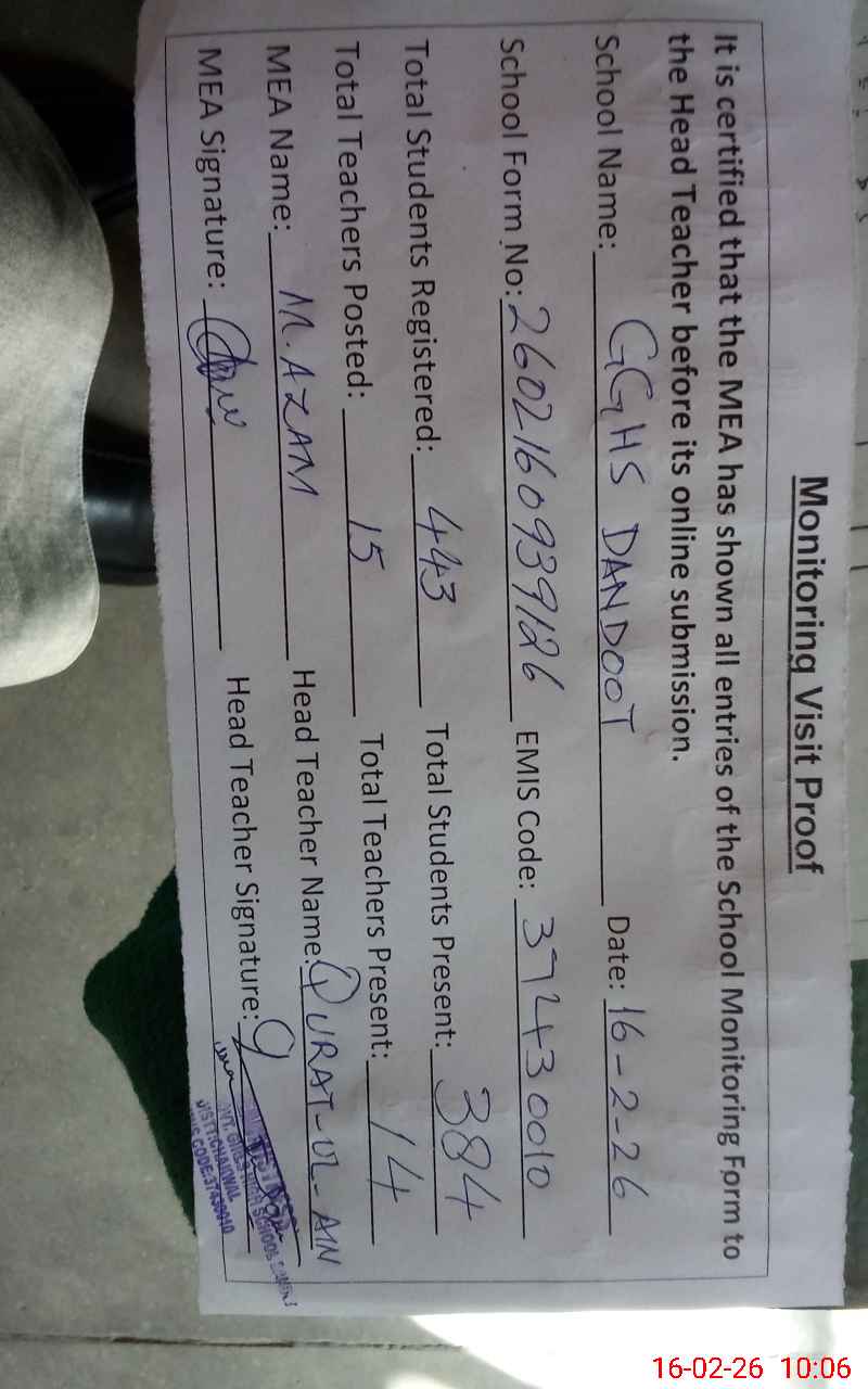 | EMIS Code: 37430010 | Name of School: GGHS DANDOOT | |||