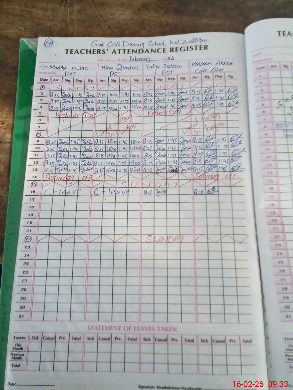 | 31**** | Ma**** Na**** | PST Science/Maths | Regular | 0 | 0 | 0 | 0 | 0 | 0 | 0 | 0 | 0 | Absent (Un-Authorized) |