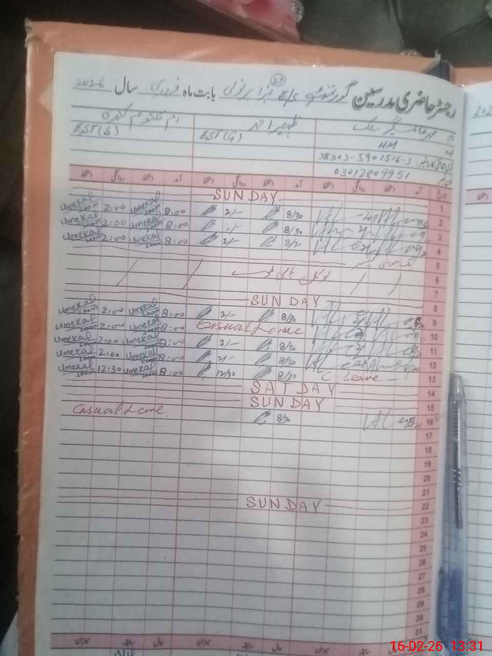 | Name: Mu**** Al**** Ma**** Designation: (School Headmaster's/Headmistress's) SST Phone/Cell Number: 03**** |