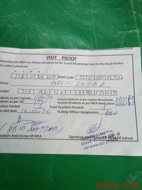 | EMIS Code: 33120072 | Name of School: GPS CHAK 53 GB II | |||