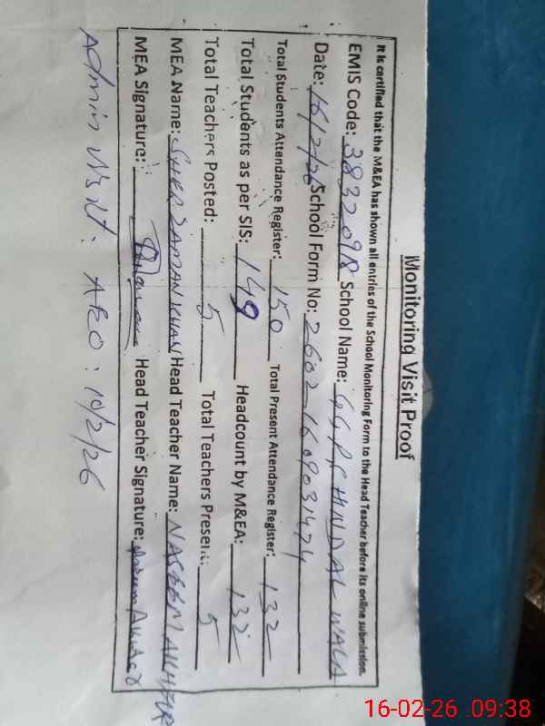 | EMIS Code: 38320918 | Name of School: GGPS HINDAL WALA | |||
