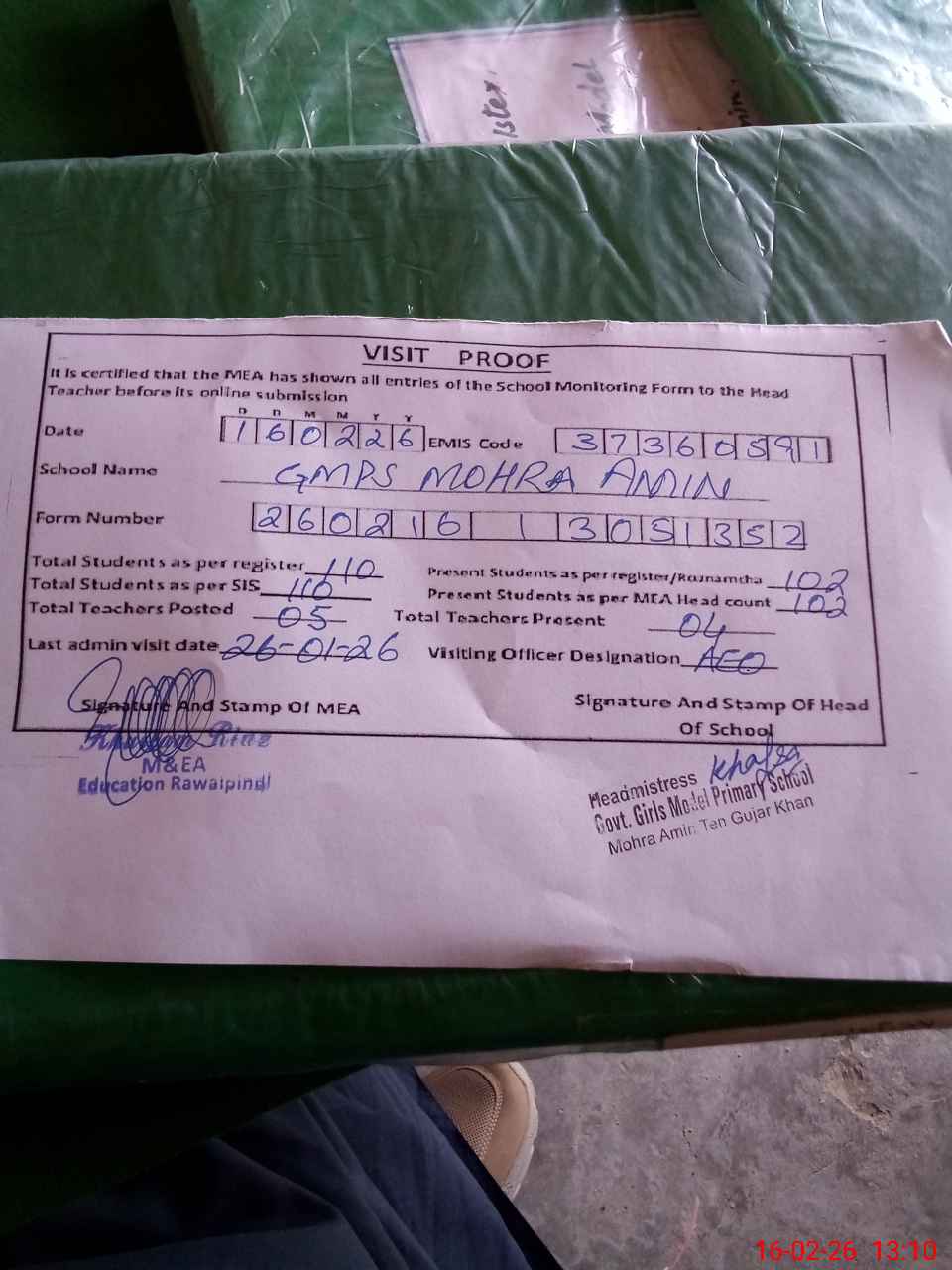 | EMIS Code: 37360591 | Name of School: GGPS MODEL MOHRA AMIN | |||