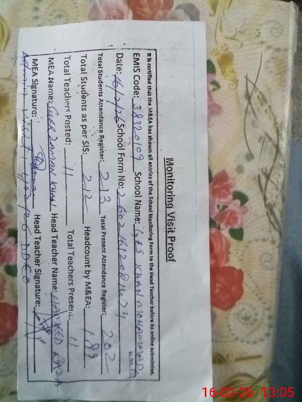 | EMIS Code: 38320109 | Name of School: GES KHAN MOHAMMAD WALA | |||