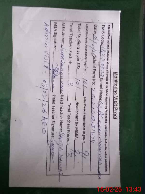 | EMIS Code: 38320923 | Name of School: GGPS KHAN MOHAMMAD WALA | |||