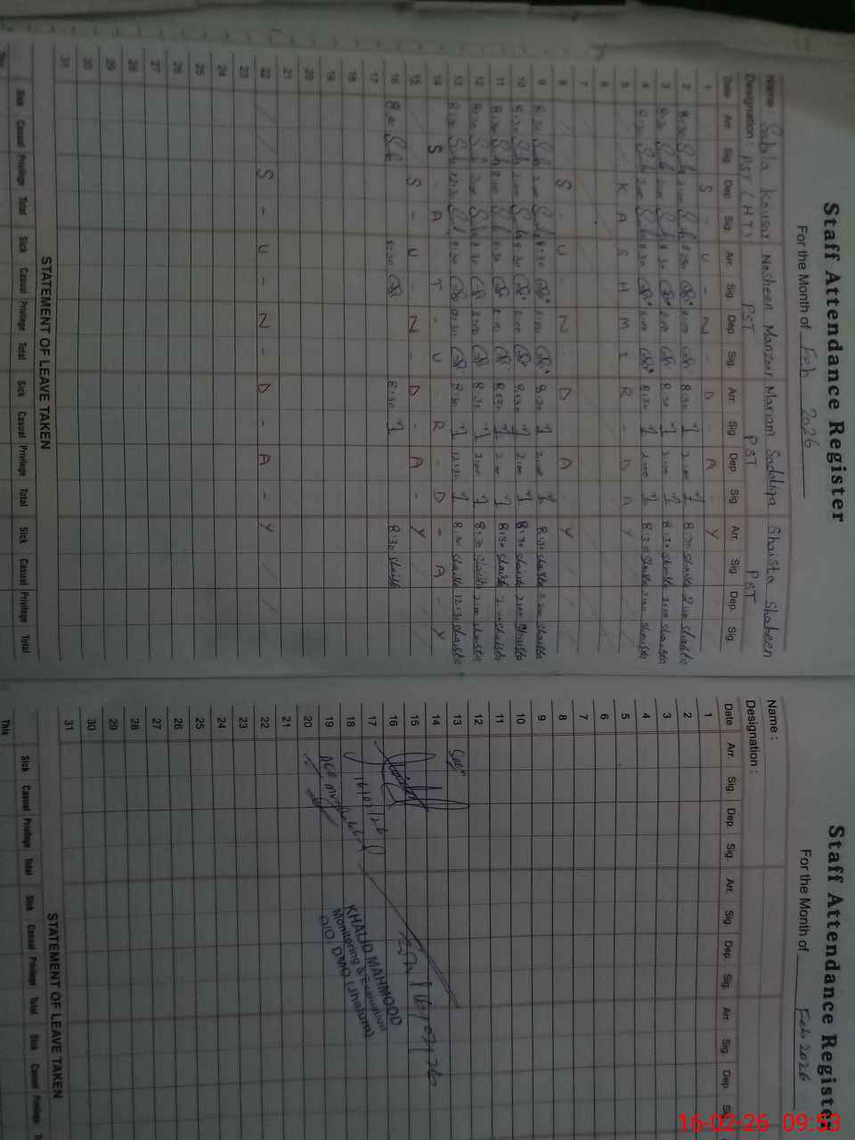 | Name: Sa**** Ka**** Designation: (School Headmaster's/Headmistress's) Headmistress Phone/Cell Number: 03**** |