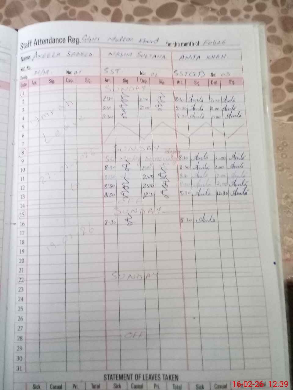 | 37**** | No**** Su**** | SST Arts | Regular | 0 | 0 | 0 | 0 | 0 | 0 | 0 | 0 | 0 | Absent (Un-Authorized) |