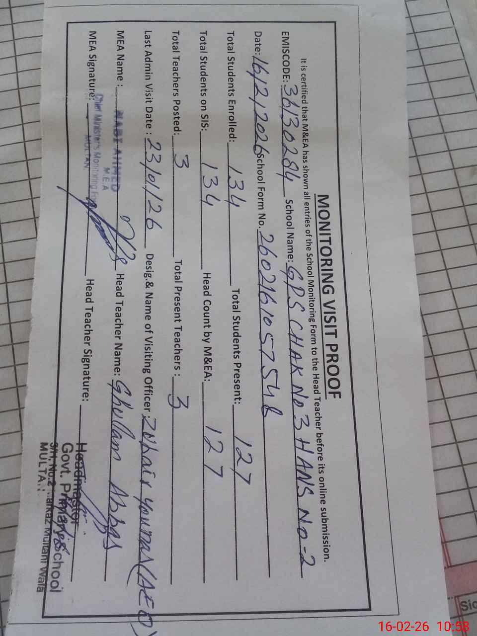 | EMIS Code: 36130284 | Name of School: GPS CHAK NO 3 HAINS NO:2 KOT MELA RAM MULTAN | |||