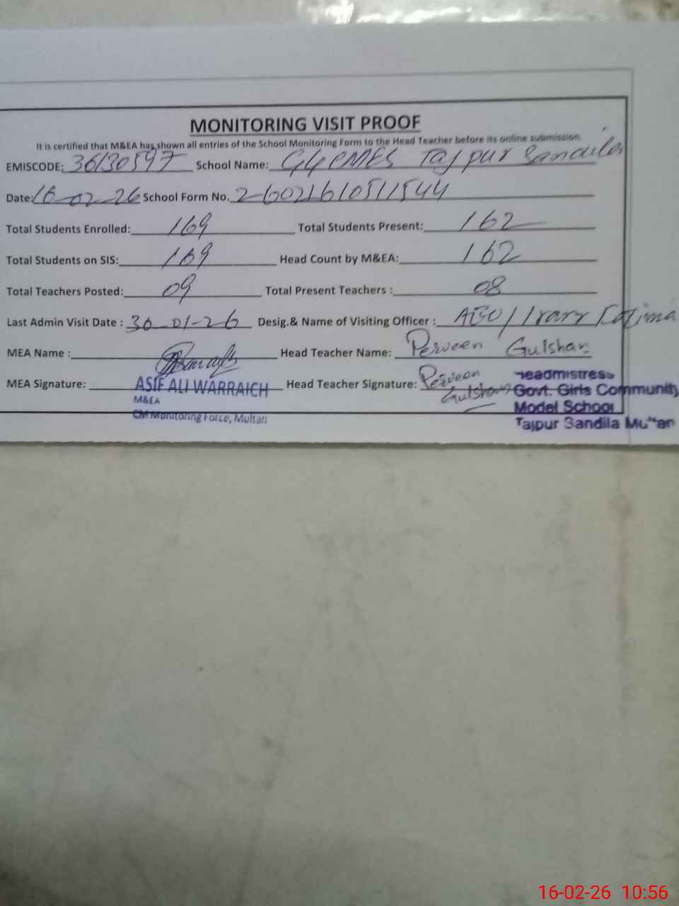 | EMIS Code: 36130597 | Name of School: GGCMES TAJ PUR SANDILA MULTAN | |||