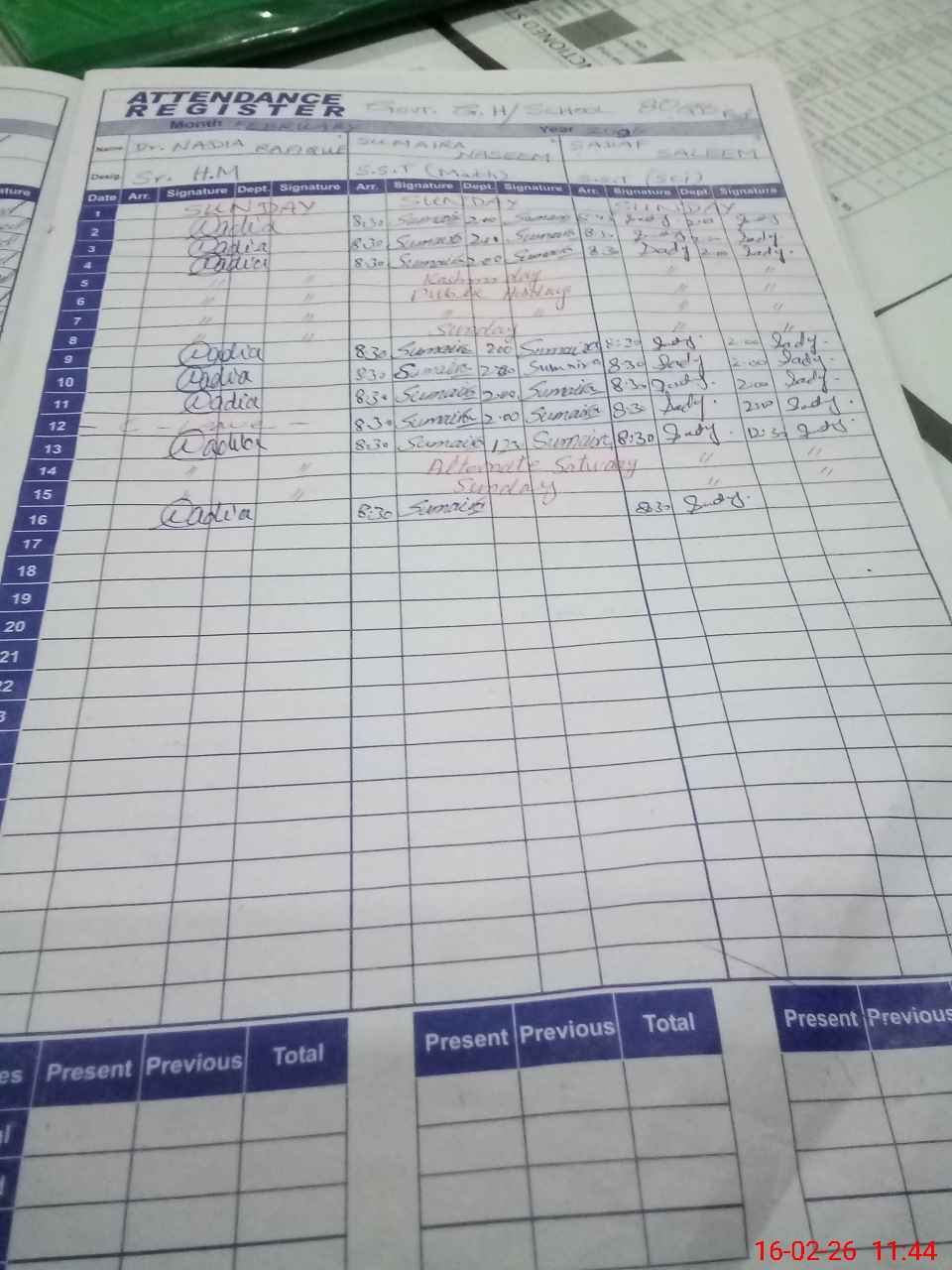 | CNIC | Full Name | Designation | R/C | Absence During Last Calender Month |
