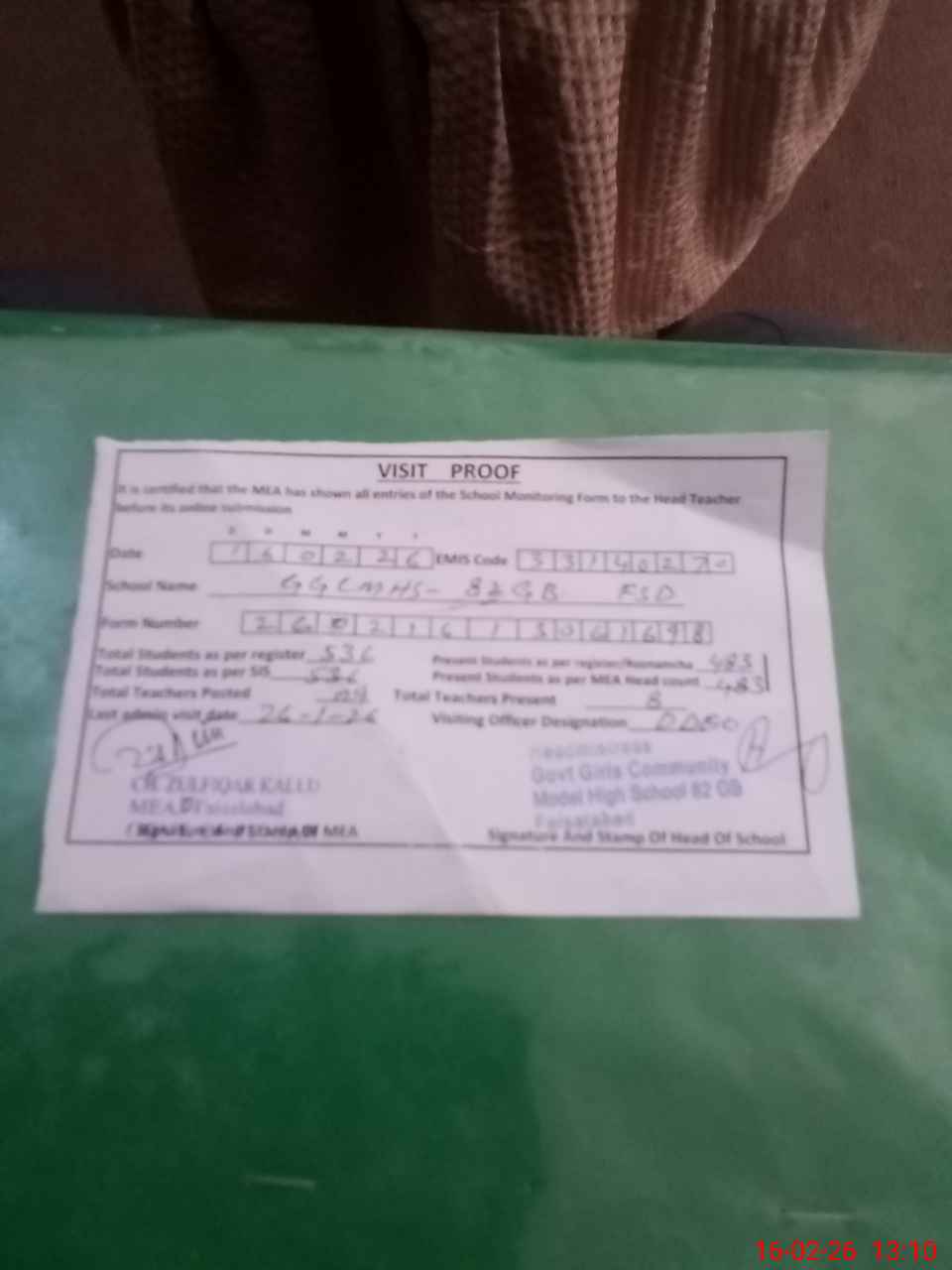 | EMIS Code: 33140270 | Name of School: GGCMHS CHAK 82 GB | |||