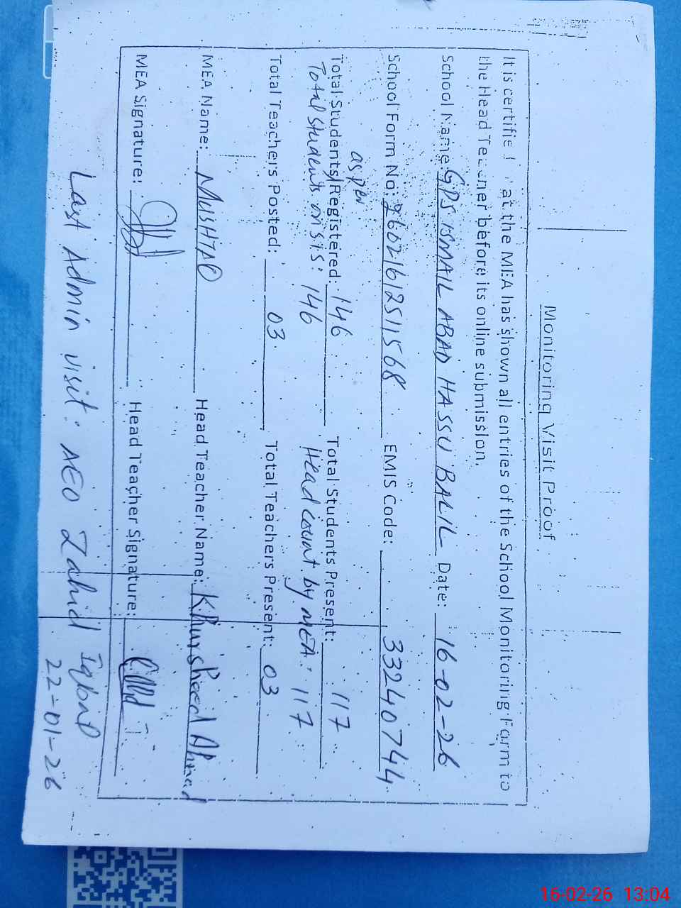 | EMIS Code: 33240744 | Name of School: GPS ISMAIL ABAD HASUU BALIL | |||