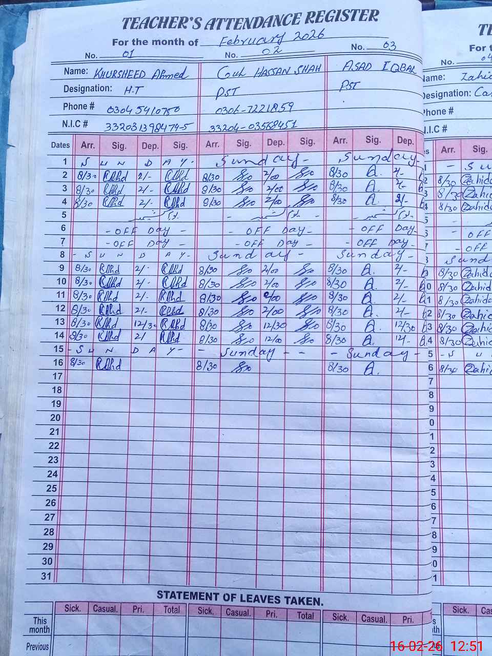 | Name: KH**** Designation: (School Headmaster's/Headmistress's) PST Phone/Cell Number: 03**** |