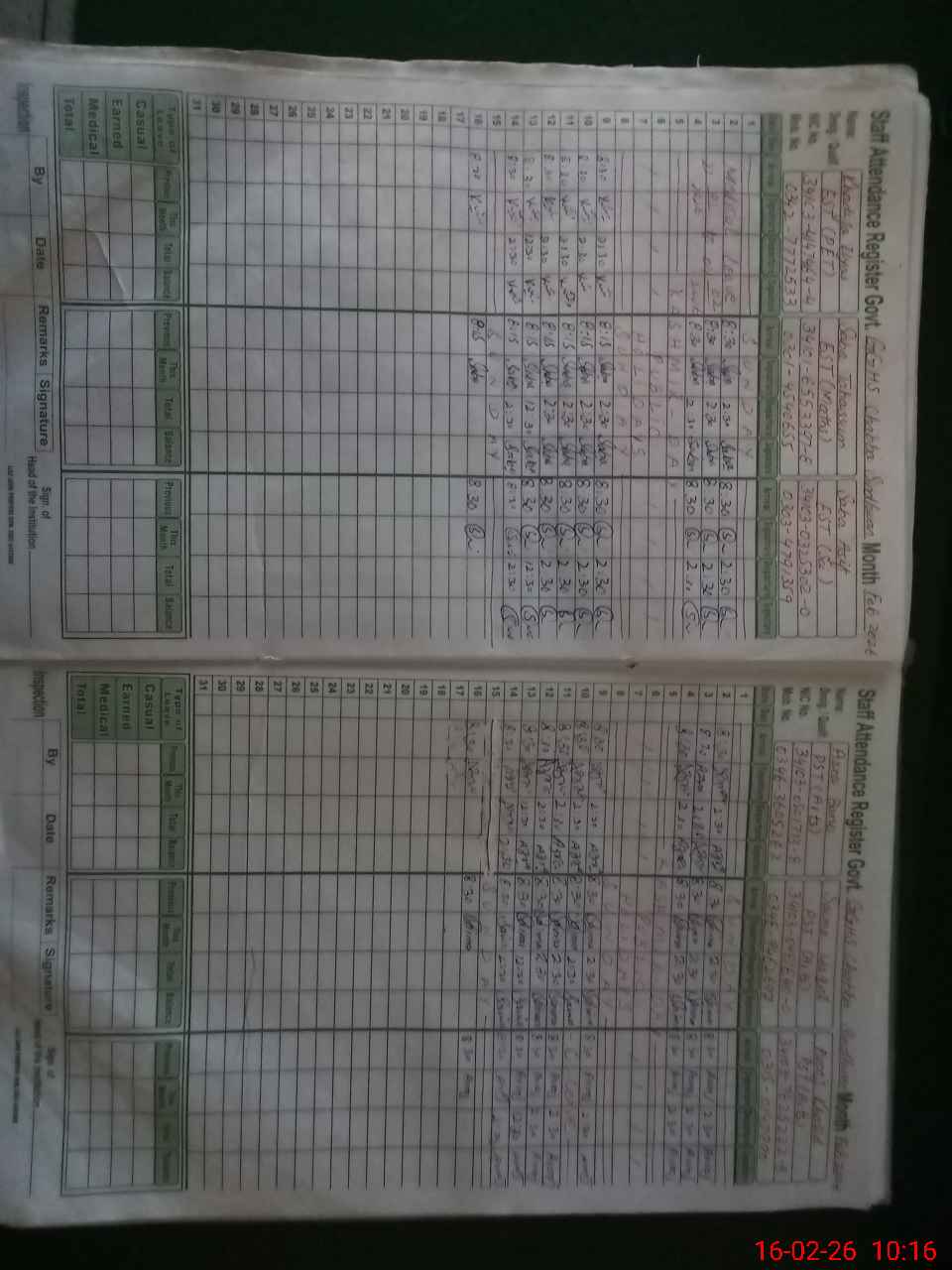 | CNIC | Full Name | Designation | R/C | Absence During Last Calender Month |