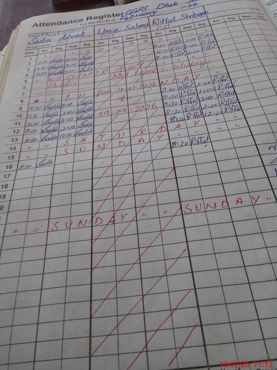 | CNIC | Full Name | Designation | R/C | Absence During Last Calender Month |
