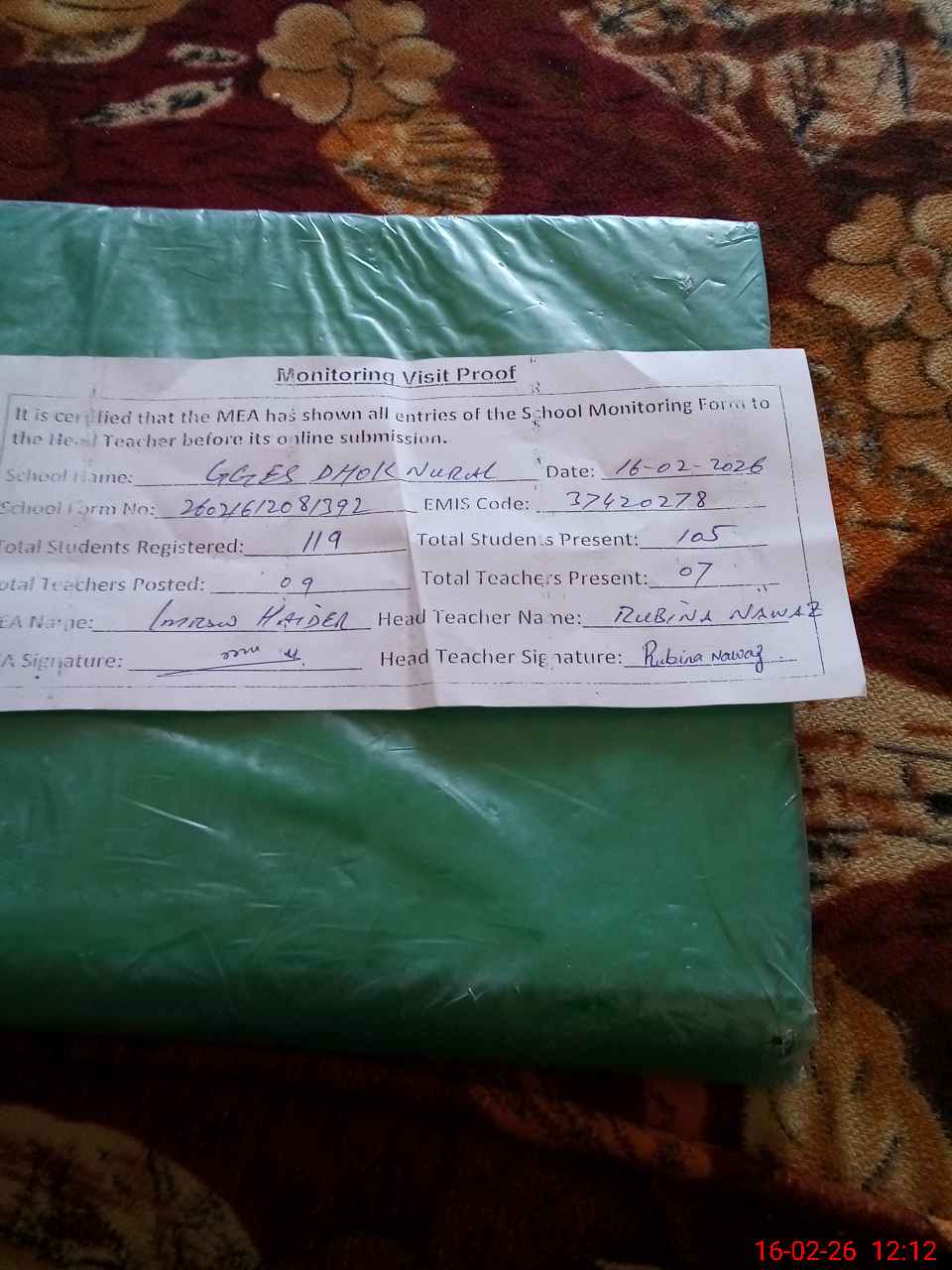 | EMIS Code: 37420278 | Name of School: GGES DHOK NURAL | |||