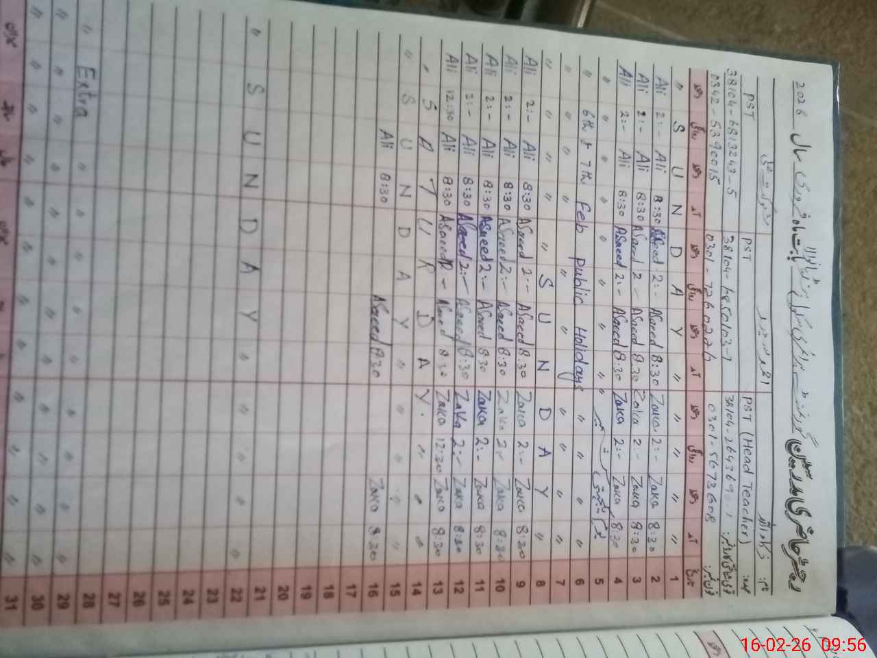 | Name: Za**** Ul**** Designation: (School Headmaster's/Headmistress's) PTC/JV Phone/Cell Number: 03**** |