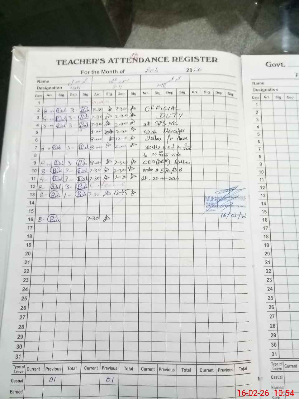 | Remarks (Use Separate Page if Required): JC syed Fauz ul Islam on high court duty assigned by principal NQ on official duty at GPS Ms shah mahanger by order s of CEO new block under construction since 2021 need to ready at earliest for education desire ECE room need basic teaching aids like ECE kit | |||||