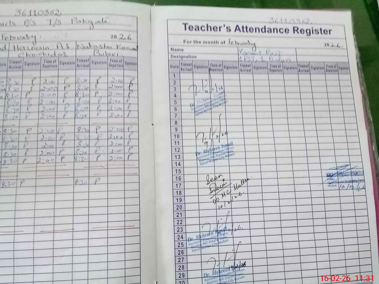 | Attendance Register | Head Teacher | MEA with School | Visit Proof |
