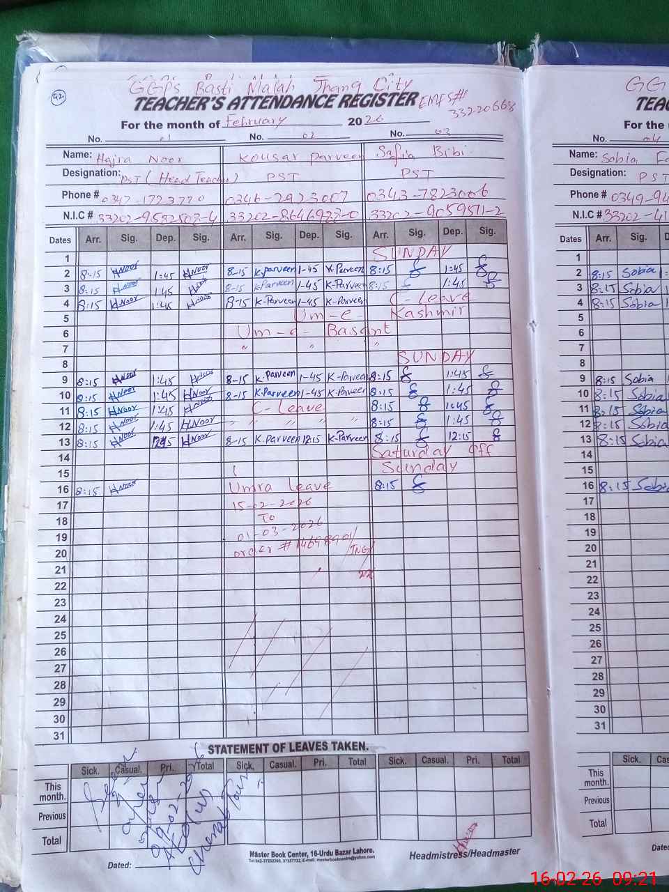 | Name: Ha**** No**** Designation: (School Headmaster's/Headmistress's) PST Phone/Cell Number: 03**** |