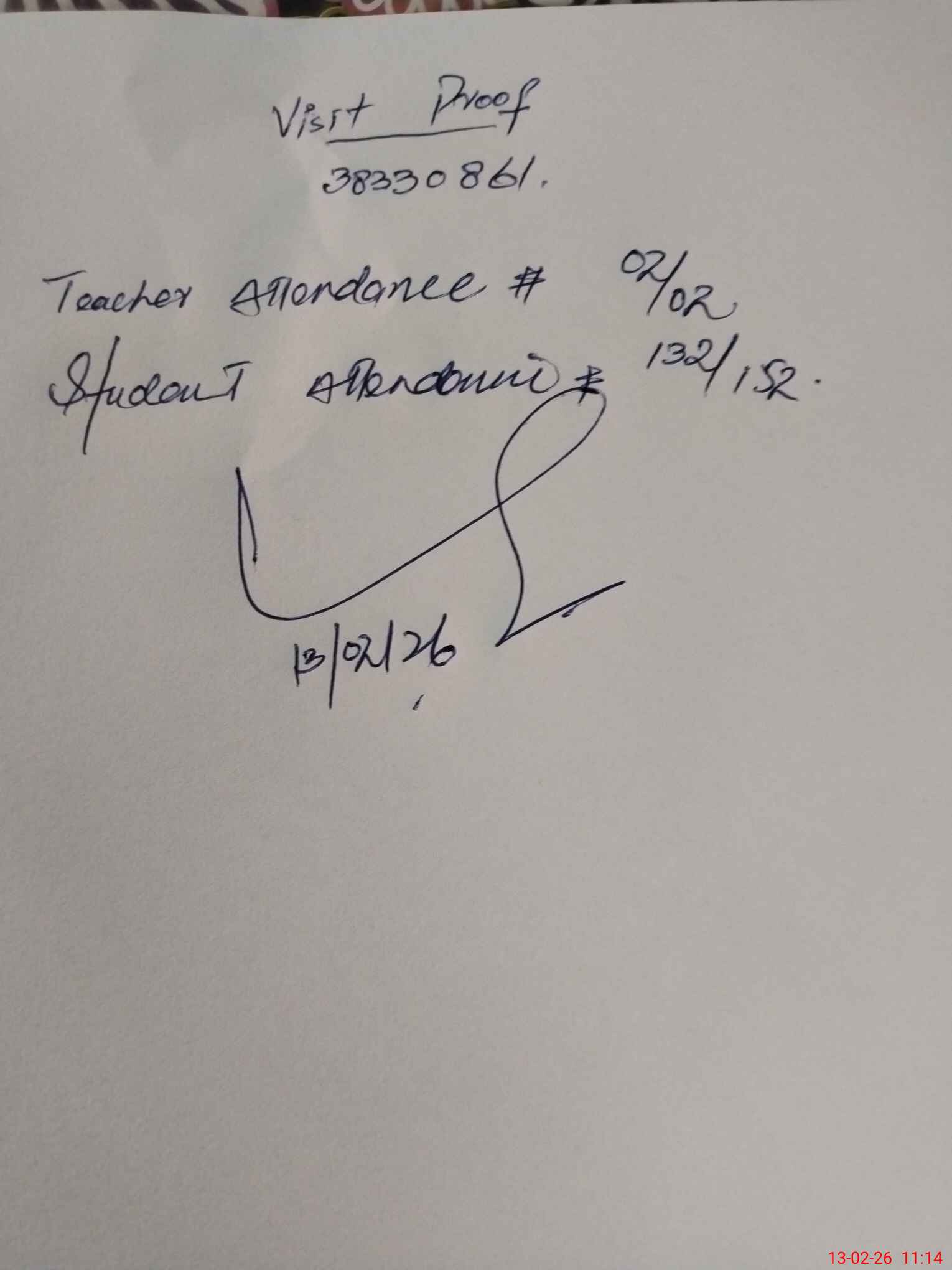 | Attendance Register | Head Teacher | MEA with School | Visit Proof |