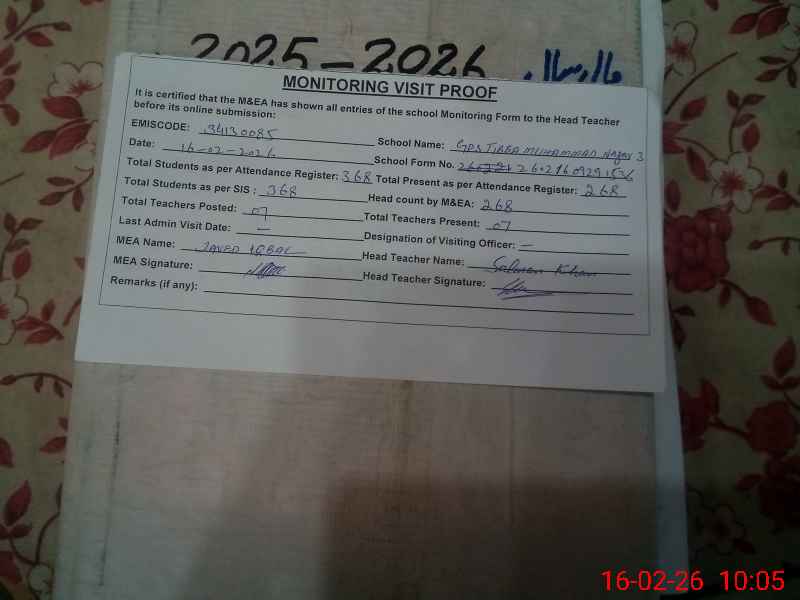 | EMIS Code: 34130085 | Name of School: GPS TIBBA MUHAMMAD NAGAR NO.3 | |||