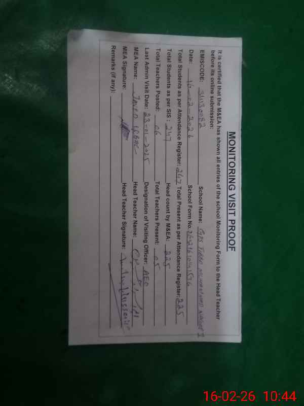 | Certified that this School was Inspected by the Undersigned MEA/DMO Today and the Information Stated Above is as Per Record. | |||||