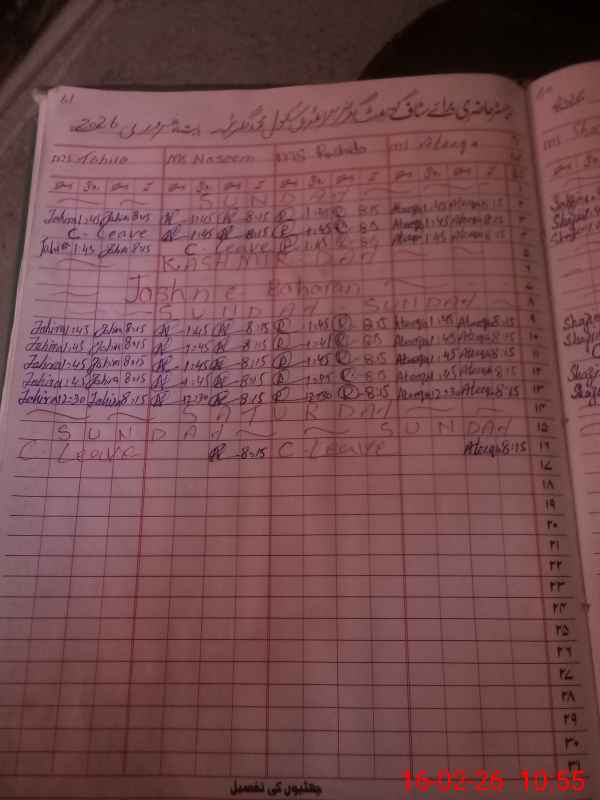 | CNIC | Full Name | Designation | R/C | Absence During Last Calender Month |