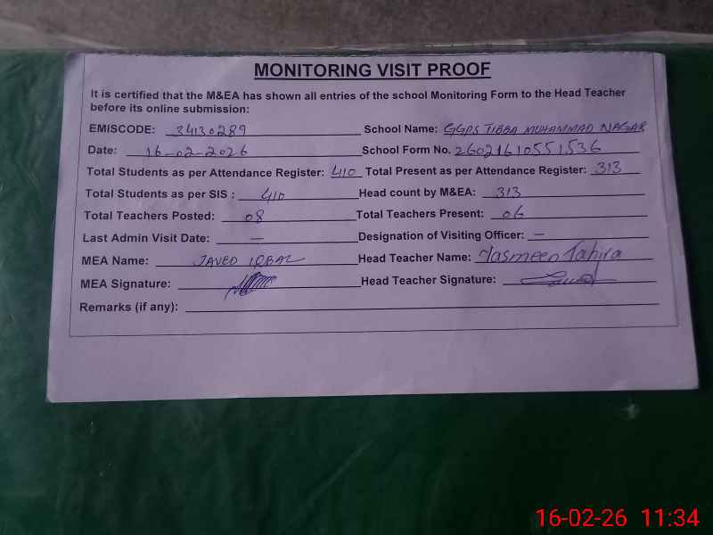 | EMIS Code: 34130289 | Name of School: GGPS TIBBA MUHAMMAD NAGAR | |||