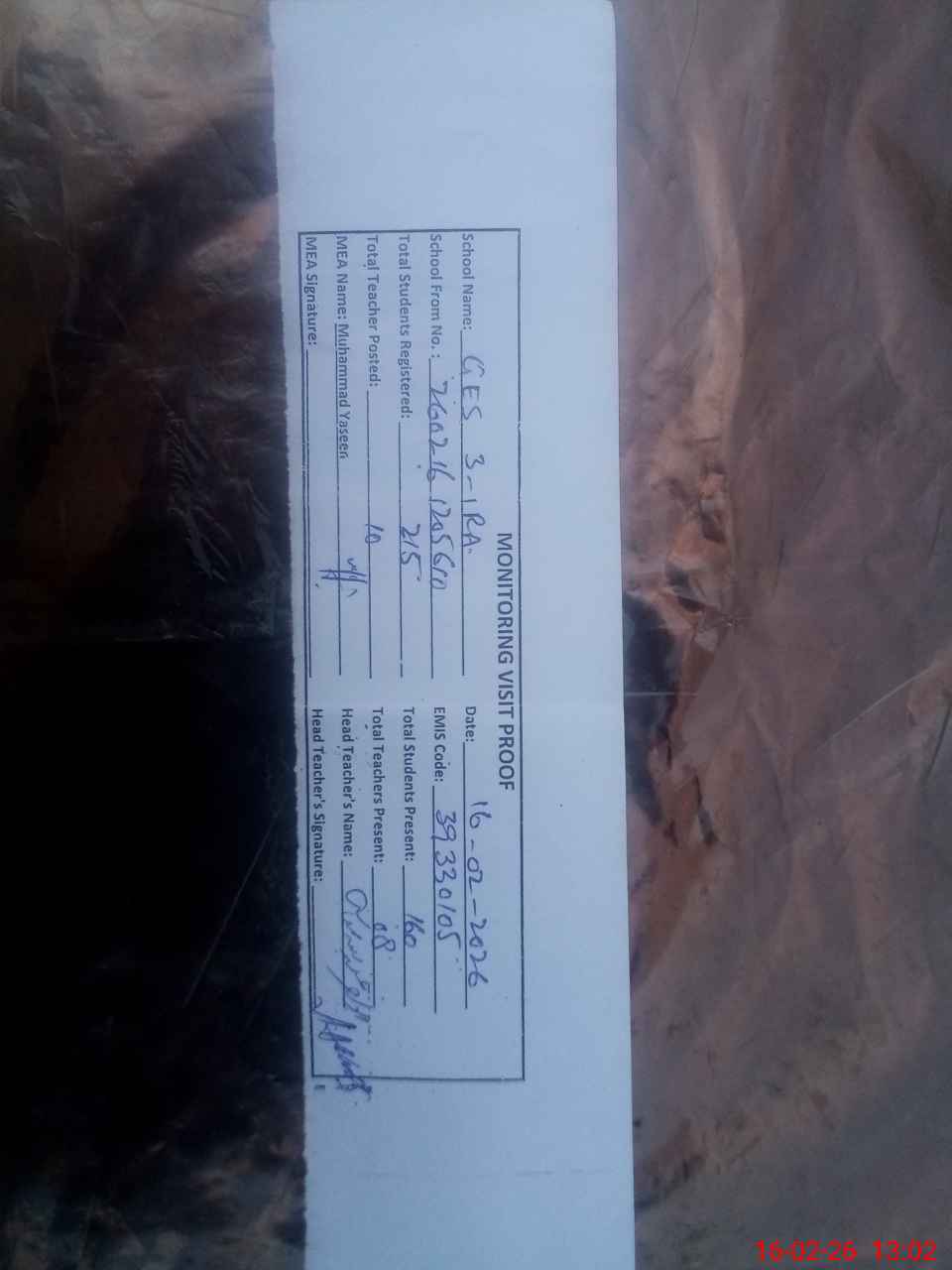 | EMIS Code: 39330105 | Name of School: GES CHAK NO. 3/1-RA | |||