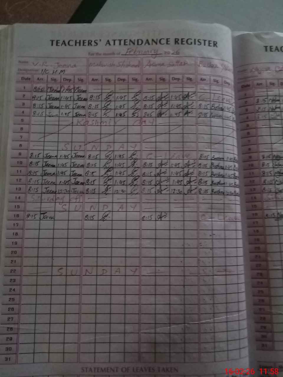| 35**** | Sa**** Ku**** | PST Arts | Regular | 0 | 0 | 0 | 0 | 0 | 0 | 0 | 0 | 0 | Exam Duty |