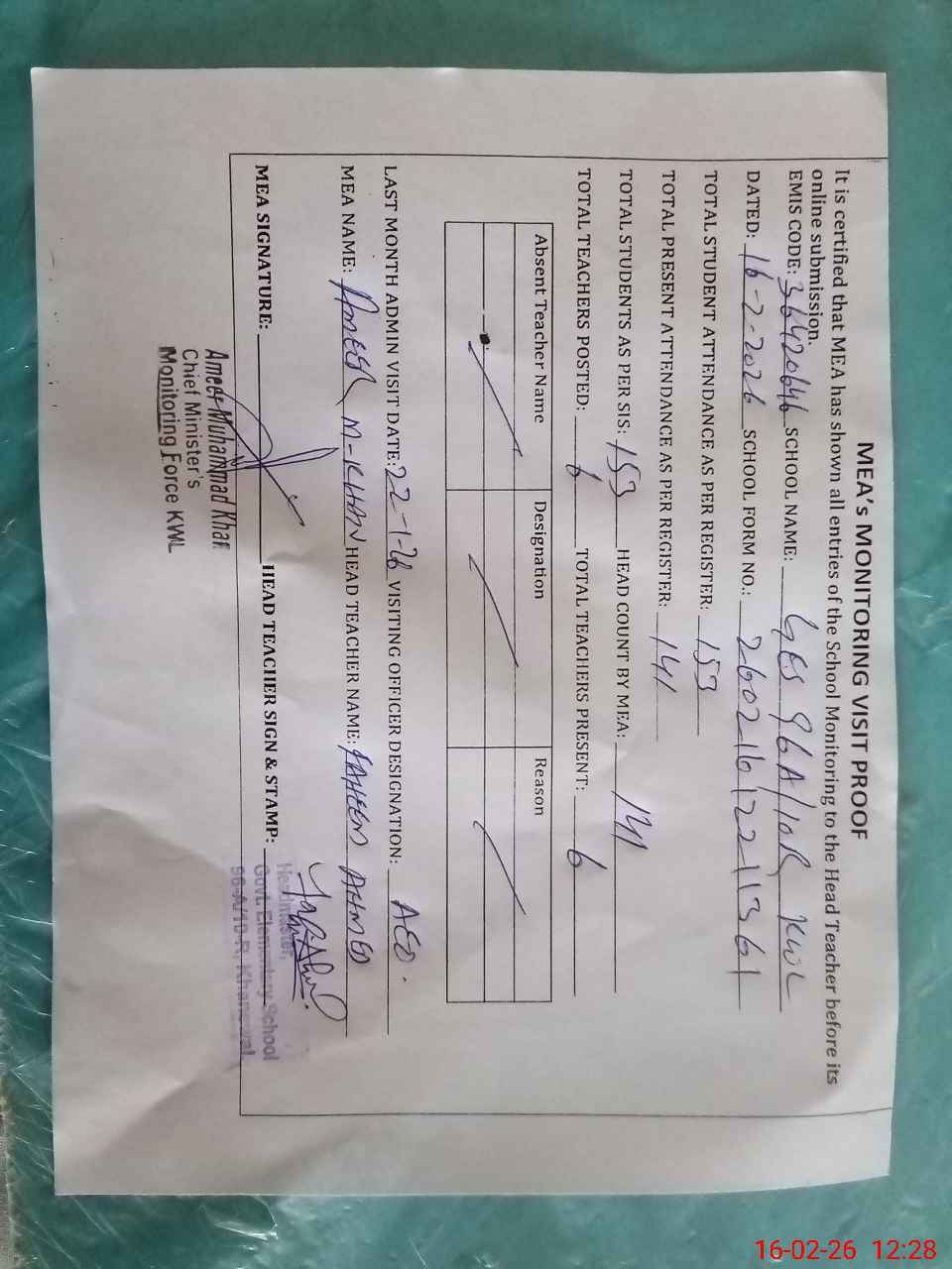 | Monitoring Date: 16-02-2026 | Start Time: 16-02-2026 12:04 PM | End Time: 16-02-2026 12:32 PM | Name of MEA: Am**** Mu**** Kh**** | |