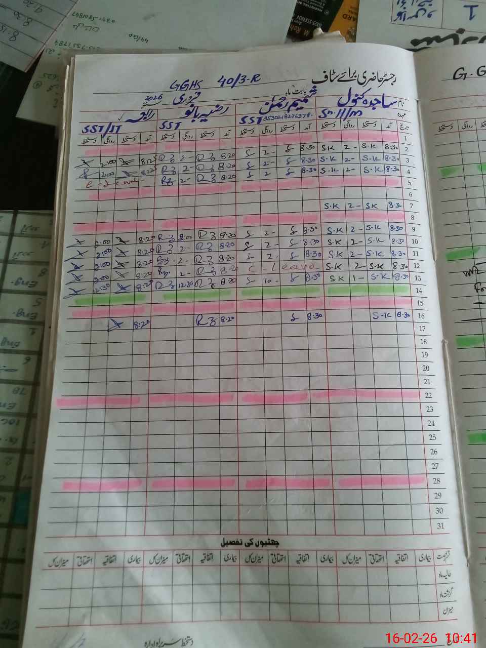 | CNIC | Full Name | Designation | R/C | Absence During Last Calender Month |