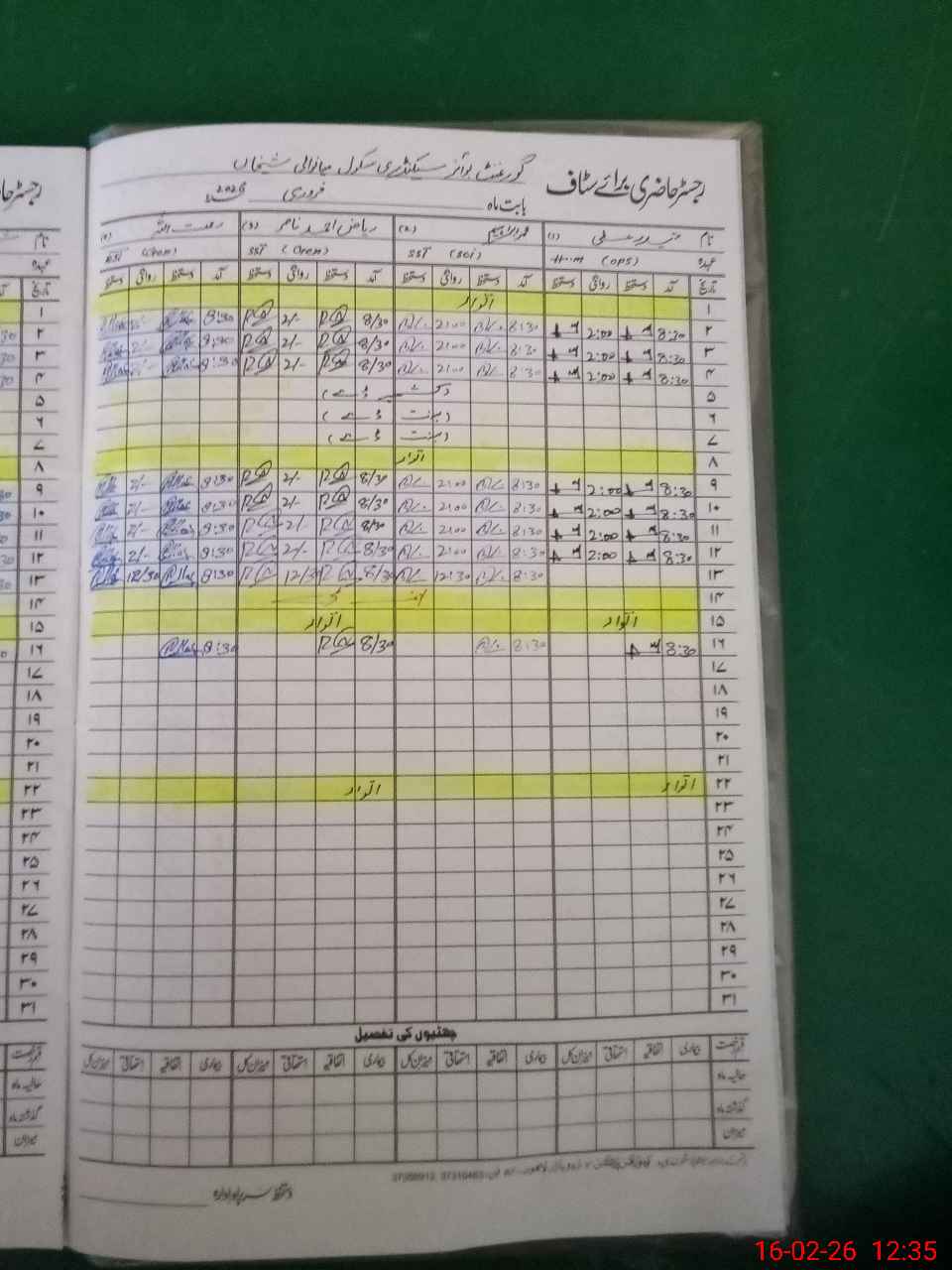 | CNIC | Full Name | Designation | R/C | Absence During Last Calender Month |